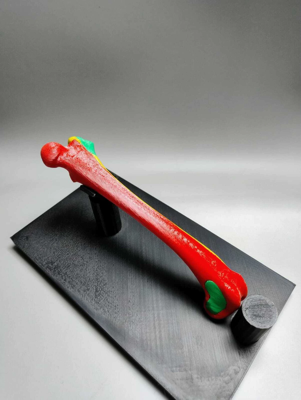 Este modelo anatômico impresso em 3D apresenta com detalhes o osso do femur