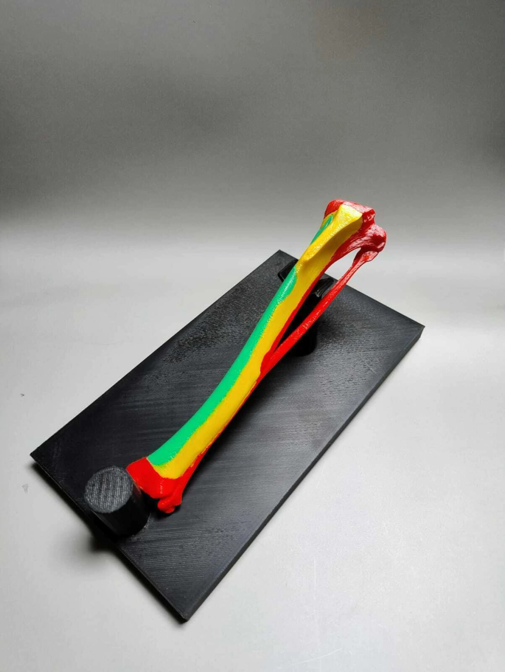 Este modelo anatômico impresso em 3D apresenta com detalhes o osso da tibia e fibula